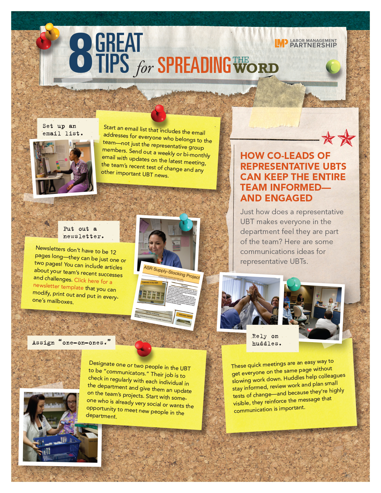 Use one or more of these tips to help make sure all the UBT members—not just those who sit on the team's representive body—are engaged in and informed about the team's work.