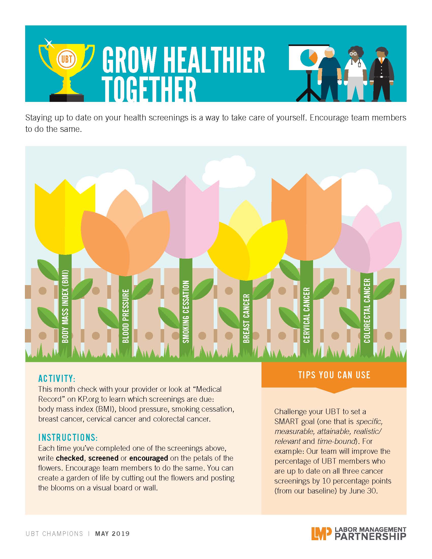 TOOLS Health and Safety Champions — May 2019 Focus Share Tweet Email Format:PDFSize:One page, 8.5" x 11" Intended audience:UBT health and safety championsBest used:Encourage your teammates to stay up to date on their health screenings.Related tools: Health and Safety Champions—October 2018 Focus Health and Safety Champions — September 2020 Focus Health and Safety Champions — July 2019 Focus Health and Safety Champions—February 2018 Focus Health and Safety Champions—April 2018 Focus Download PDF 159 people found this helpful. Was it helpful to you? YesNo