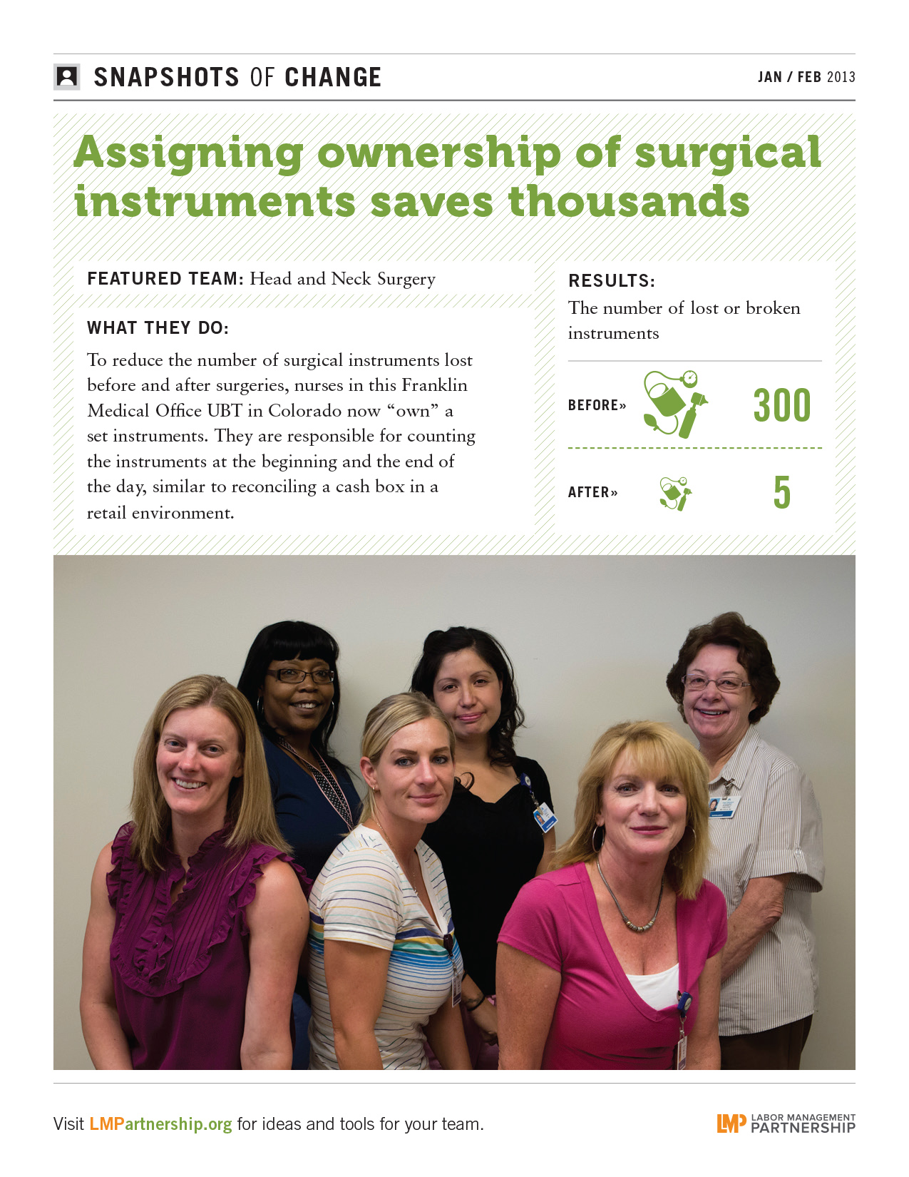 Hang this poster highlighting a Colorado team's better way to keep track of surgical instruments—and save thousands of dollars—on bulletin boards, in break rooms and other staff areas.